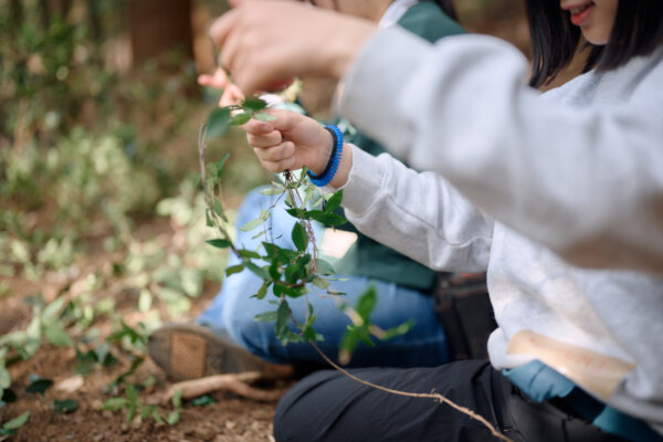 The day began with an orientation where campers, Leaders In Training (LITs), camp staff and sponsor volunteers split into groups, chose team leaders, created team names, and warmed up with an ice breaker. Next, our partners from Mori to Odoru explained the mission of the day: creating shigarami: barriers built from fallen branches, leaves, and vines that clear forest paths for people and animals, create space for new trees to grow, and help control water flow during periods of heavy rain. Campers learned about the forest’s ecosystem, and how their own hands-on work contributes to keeping them healthy and accessible for all.