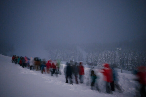 As night fell, we set out for an anticipated activity of the weekend: the night hike. With the snow continuing to fall heavily, the trail was so deep that it felt less like hiking and more like swimming through snow! For many children and adults alike, it was a first-time experience.